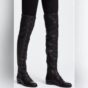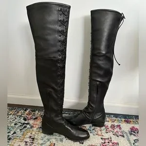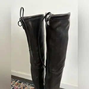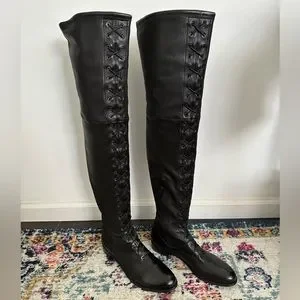 Stuart Weitzman Exes Black Leather Lace Up OTK Boots Size 9.5