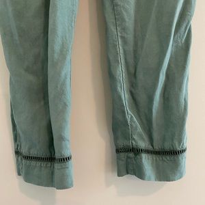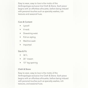 This jumpsuit is beautiful! Soft fabric with a cinch belt and tie back. Detail at ankles and neckline. Perfect condition, no stains or tears.