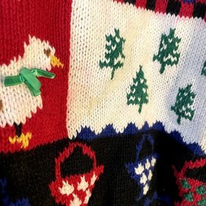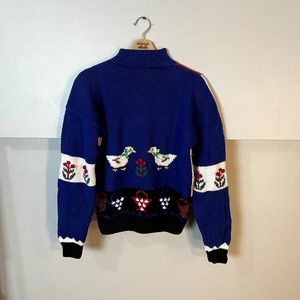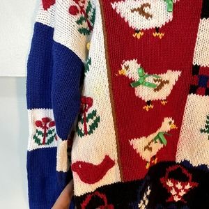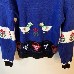 Gently used, super cool vintage knit sweater with ducks and a barn and cute little bow details. Gently used, good vintage condition. Some faint spots as pictured.