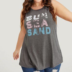 NWT Bloomchic 3X 22/24 SUN SEA SAND Palm Tree Tank Gray Summer Spring