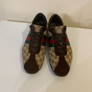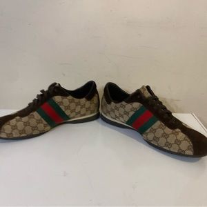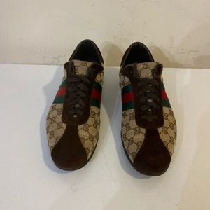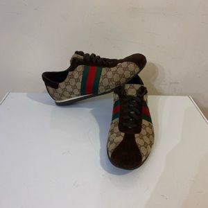 Gucci Brown/Beige Suede And GG Canvas men shoes Sneakers Sz G 10 US 11