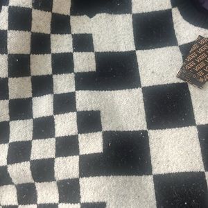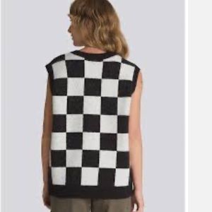 A classic piece with an Off-The-Wall twist, the Courtyard Checker Sweater Vest has a v-neck neckline, ribbed hems, and an all over checkboard inspired print.