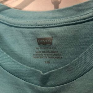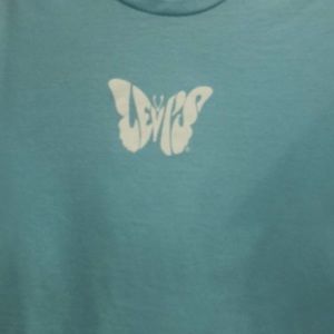 Levi's Jordie Cropped T Shirt Top Size Large Women's Graphic Butterfly Blue