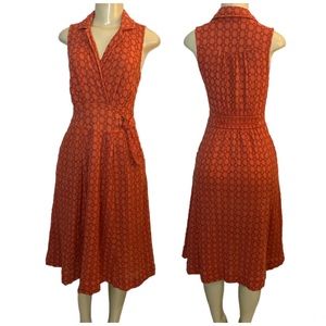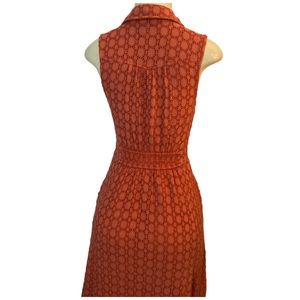 ANTHROPOLOGIE Burnt Orange Eyelet Fit & Flare Sleeveless Dress With Pockets Size 4.