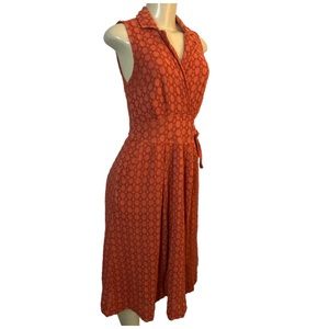 ANTHROPOLOGIE Burnt Orange Eyelet Fit & Flare Sleeveless Dress With Pock…