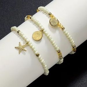 3pcs Ocean Style Bead, Tree Of Life, Starfish, Shell, Multi-layer Women's Anklet