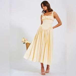 NWT Noreen cream / pastel yellow Satin Corset midi / Maxi formal Sundress
