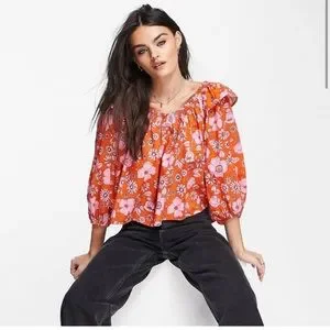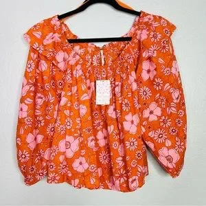 Free People NWT Miss Daisy Floral Printed Smock Blouse sz S