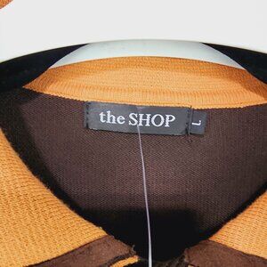 NEW Ska & Soul Yardi Cardi Button through Mod Polo. The Shop orange, yellow and brown striped cardigan, size Large. 100% cotton. This Ska & Soul Yardie Cardie is just the ticket for adding a dash of old skool retro Acid Jazz and and vintage Ivy League inspired Americana style to your winter wardrobe. This classic black knitted button through polo shirt features ginger and yellow retro stripe panel detailing, contrast buttons and a cool Alcantara faux suede tipped collar for added vintage vibes. An eye catching knitwear piece, the Yardi Cardi knit polo cardigan from Ska & Soul blends nostalgic and heritage fashions with a cool and contemporary indie edge.
