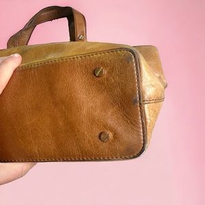 Tory Burch Bombe Tan Glazed Leather Handbag Zip Top Tote