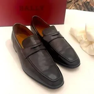 Mens BALLY Dark Grained Gray Slip on Loafer Shoes 9 1/2