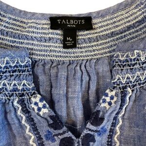 Talbots linen embroidered pullovers top in excellent used condition. Free of flaws.