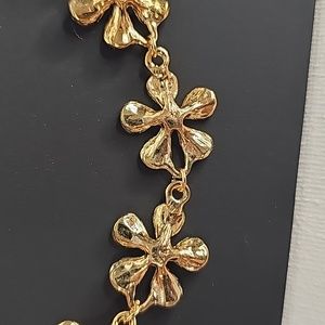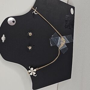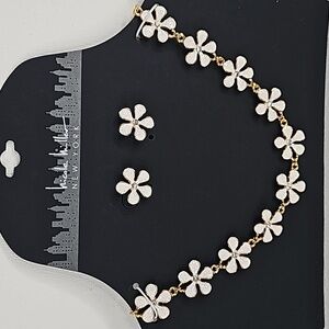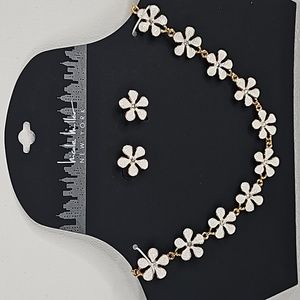 Flower Petal Necklace & Earring Set in Shimmering Iridescent White w Crystal