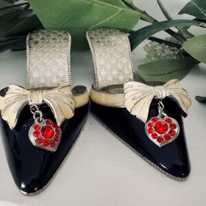 PartyLite 2 Shoe Tealight Holder Enamel Cast Metal Austrian Crystal 5.5"Wx1.5"