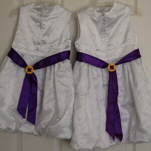 Bundle of 2 NEW Handmade Flower Girl White Satin Dresses, Sizes 4T-6T