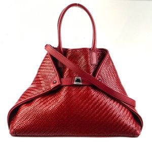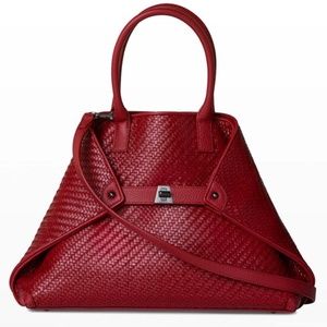 Akris Ai Woven Braided Top-Handle Leather Bag Crimson Red NWT
