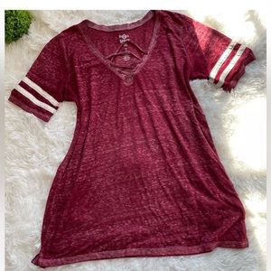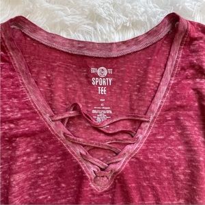 SO Lace-Up Varsity Shirt Tee Crisp Merlot Juniors Size XS Maroon Women’s @