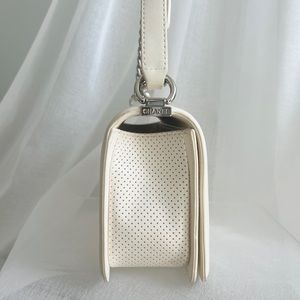 2014 Chanel Perforated Lambskin Leather Medium White Flap Boy Bag