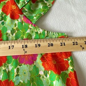 Pleione Size Lg White Orange hibiscus Floral Ruffle Flutter Sleeve V Neck Top