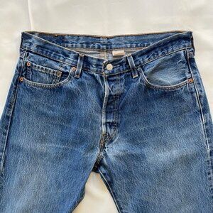 LEVI'S Jeans 501 Vintage Denim Blue Medium Wash Faded 90s Y2K Button Fly 34x30 (Measures 34x29)