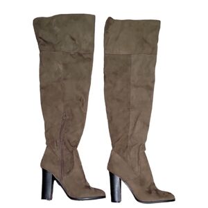 Charlotte Russe Brown Faux Suede Thigh High Heeled Boots Size 8