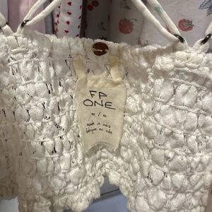 White Free People Bralette. So feminine & girly. Perfect for the beach or by the water. A staple piece. Worn a few times and has some loose threads but overall good condition. No major flaws. Happy Poshing. 🦋