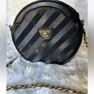 Christian Dior Crossbody Bag Shoulder Bag Black Gold Strap
