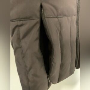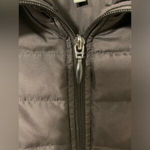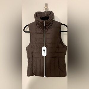 Kenneth Cole Reaction Down Filled Puffer Vest in Chocolate Brown size Small. See pictures for measurements. Full zipper in front and 2 vertical zip pockets. Stand up collar zips up for warmth. Mid weight. Great layering piece. Smoke free home.