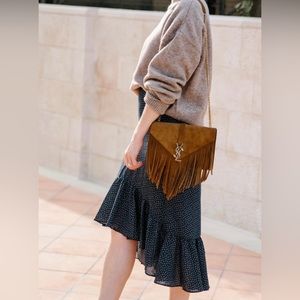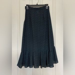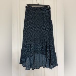 H&M High-low flowy ruffle skirt in navy blue with white dots - size 6
