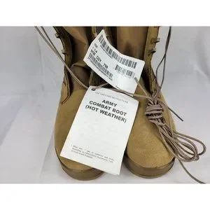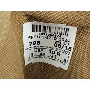 Vibram 'Hot Weather Army Combat Boot Coyote' 798 SPE1C1-17-D-1024 leather militray boots are brand new no box. There are minor marks and blemishes on the upper leather material. These fit a men's size 10R regular.
