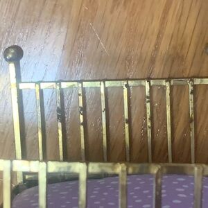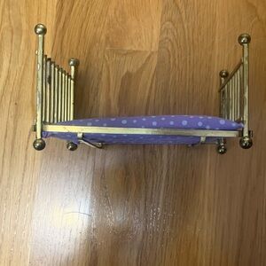 BED-Yellow tone metal frame, length 6-1/4”, with- 4.75”, height- 3”with mattress. Note small rust spots on frame, no box.