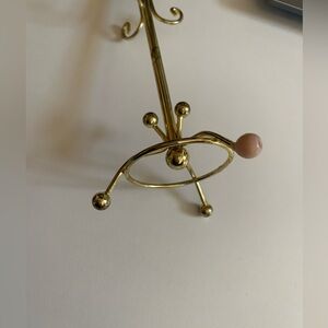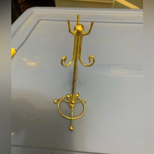 COAT RACK Brass Style- Chadwick-Miller, Inc. Canton, MA. Item # 93968. Yellow tone metal, 6” tall X 2 1/4”. One of the 3 balls on bottom of leg was missing ( from being in storage), repaired with a bead.
