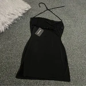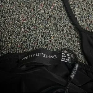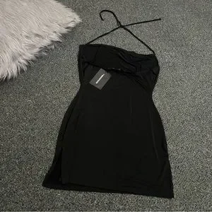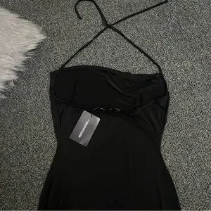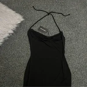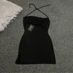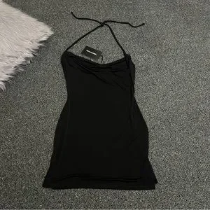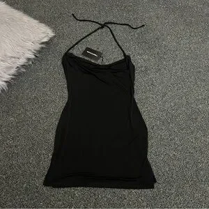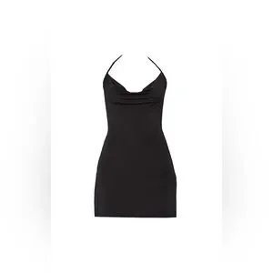 PRETTYLITTLETHING Black Slinky Halter-neck Cowl Neck Bodycon Mini Dress size 8