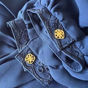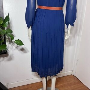 Vintage Ralph Baker Dress Navy Blue Pleated Skirt Chiffon Midi Dres Midi Size 6
