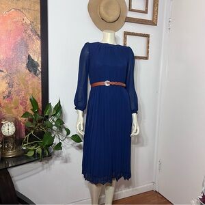 Vintage Ralph Baker Dress Navy Blue Pleated Skirt Chiffon Midi Dres Midi