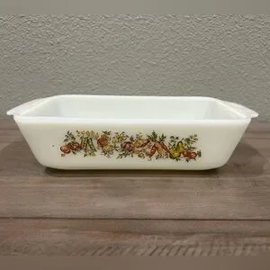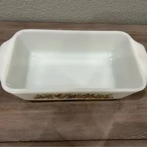 VINTAGE Anchor Hocking 1QT Loaf Pan/Casserole "Harvest Vegetable" DESIGN!!! Dish is in great condition shown on pictures. Measurements are 5” x 9”.