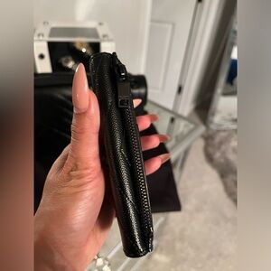 Authentic YSL Grain de Poudre Tech Cardholder. Slim and Perfect. I love the simplicity of this cardholder. It holds all your necessary cards, button has a strong snap and zipper works seamlessly. Comes with the box, dust bag and care card.