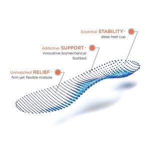 • Podiatrist-designed biomechanical footbed with contoured arch support