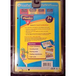 The Rainy Day Play Book 8 interactive book and cartridge set from LeapPad Phonics by LeapFrog teaches vowel combinations, decoding and rhyming words, reading comprehension and sight words. Book 8 prepares children for reading and opens the door to learning with 14 entertaining and instructive phonics games, plus the story Rainy Day Play. Works with all LeapPad learning systems, except My First LeapPad. For preschoolers through second grade (ages 4-7).