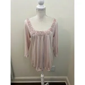 Ann Taylor LOFT Pale Pink 3/4 Sleeve Top Size Medium