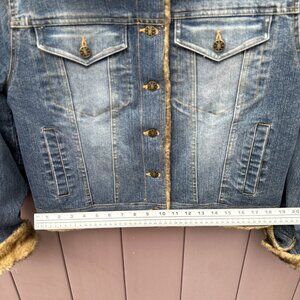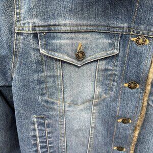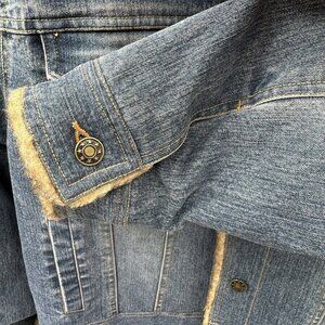 Vintage Marvin Richards Blue Denim Jean Jacket Faux Fur Lined Sz Medium 90s Y2K