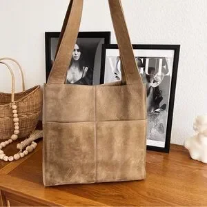 SOLD ❌ GENUINE LEATHER SUEDE LJS SHOULDER TOTE BAG #0312