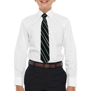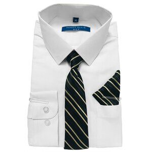 A modern take on a classic dress shirt by Perry Ellis. This solid dress shirt comes with patterned a tie. Great for your little buddy's next event. A perfect blend of elegance, style and comfort. Perfect Communion Shirt dress to impress in this fine Perry Ellis shirt and tie set.