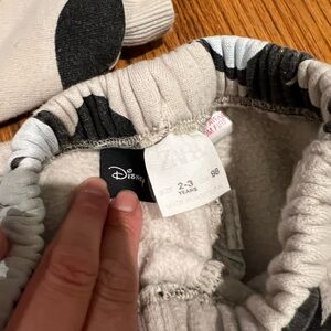 Adorable, neutral toned Mickey sweatshirt and jogger pants set in size 2-3y. In good condition with very light wear from washing and faint discoloration to the right knee (second to last photo) and the seat (last photo). A must have for any Disney fan!