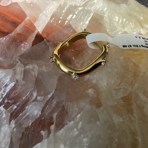 NWT Hey Harper Limited Edition Monsanto Ring. From the Limited Edition Ring from Lisbon Collection. Size 8. Stainless steel coated with 14k gold colored PVD and has 6 small clear Swarovski Crystals. Perfect ring to wear alone or stack with others. Waterproof/sweat proof/perfume proof and guaranteed by Hey Harper not to tarnish or lose color. Very nice quality made ring to add to your forever collection. See pics for details. From NS home. All reasonable offers considered.