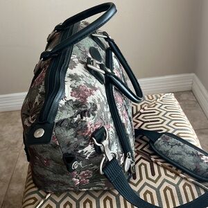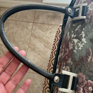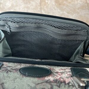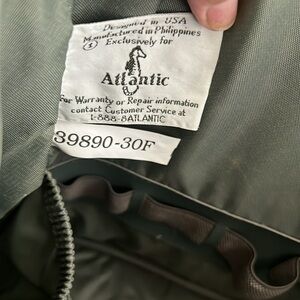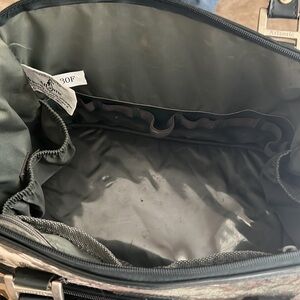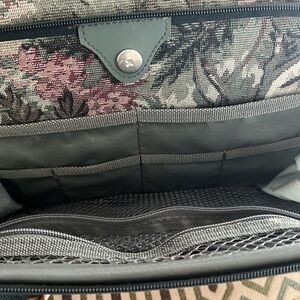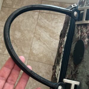 Vintage 80’s Atlantic Tapestry Carry on Shoulder Bag It’s not damaged Outer zip up pocket. Inner zip up pocket. Two Inner Velcro Pockets. Inner elastic holders for other objects. Size: 11”x 20” Very good conditions.