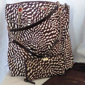 EUC Kate Spade Lindenwood Safari Tote & Wallet Bundle in Cocoa Cream Spotted Animal Print with Logo Dust Bag, Retail $486.