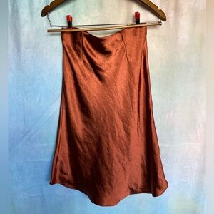 ALL : ROW Silky Satiny MIDI Slip Skirt with Elastic Waist in Rust Burnt Orange