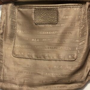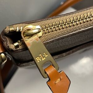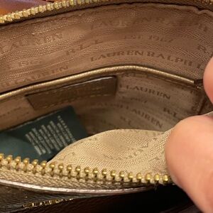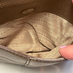 Excellent used condition Lauren Ralph Lauren Leather Crossbody purse in color metallic gold.
