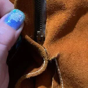 This 1960s suede leather mini-skirt is so boho! With two large pockets on the front and the ability to zip it completely off from the front you'll be super comfortable at a festival or concert